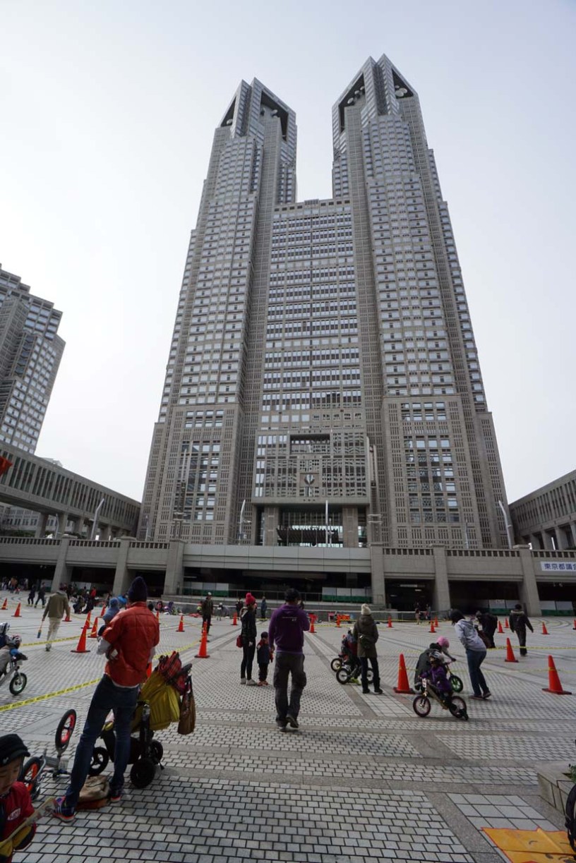 Heading to Shinjuku on the Yamanote Line. Very busy station and I head west to find a spot to get my bearings. Starbucks with wifi a few blocks away works well. A great sunny weather day and I sit outside and get on the wifi. West Shinjuku. Interesting high rise architecture in an otherwise sterile and quiet business district. Heading to the free observatory at the Tokyo Metropolitan Building #1. The courtyard had a kids push bike contest underway while western style nude statues looked on. The 49th floor provides a good overview even on this somewhat hazy cloudy day. Mt Fuji through the haze, still impressive.