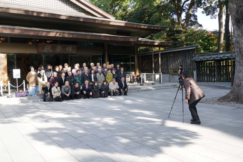 Meiji Shrine. Yamanote line to Harajuku Station. Right out of exit and right to bridge over to the park. A right takes you to a gravel pathway winding down through Torii gates to the Imperial Temple. Pathway passes through a forest of signing birds colorful trees with leaves still on display laughing ravens and a blue sky above the canopy of tall trees.