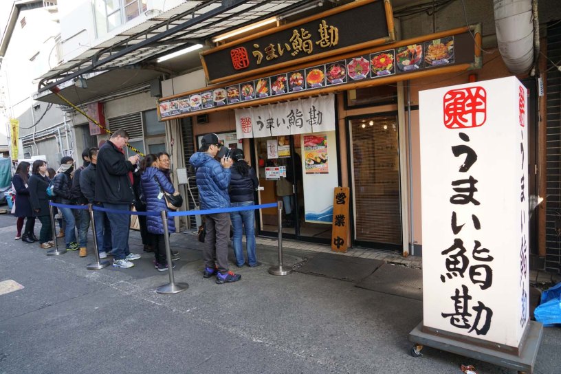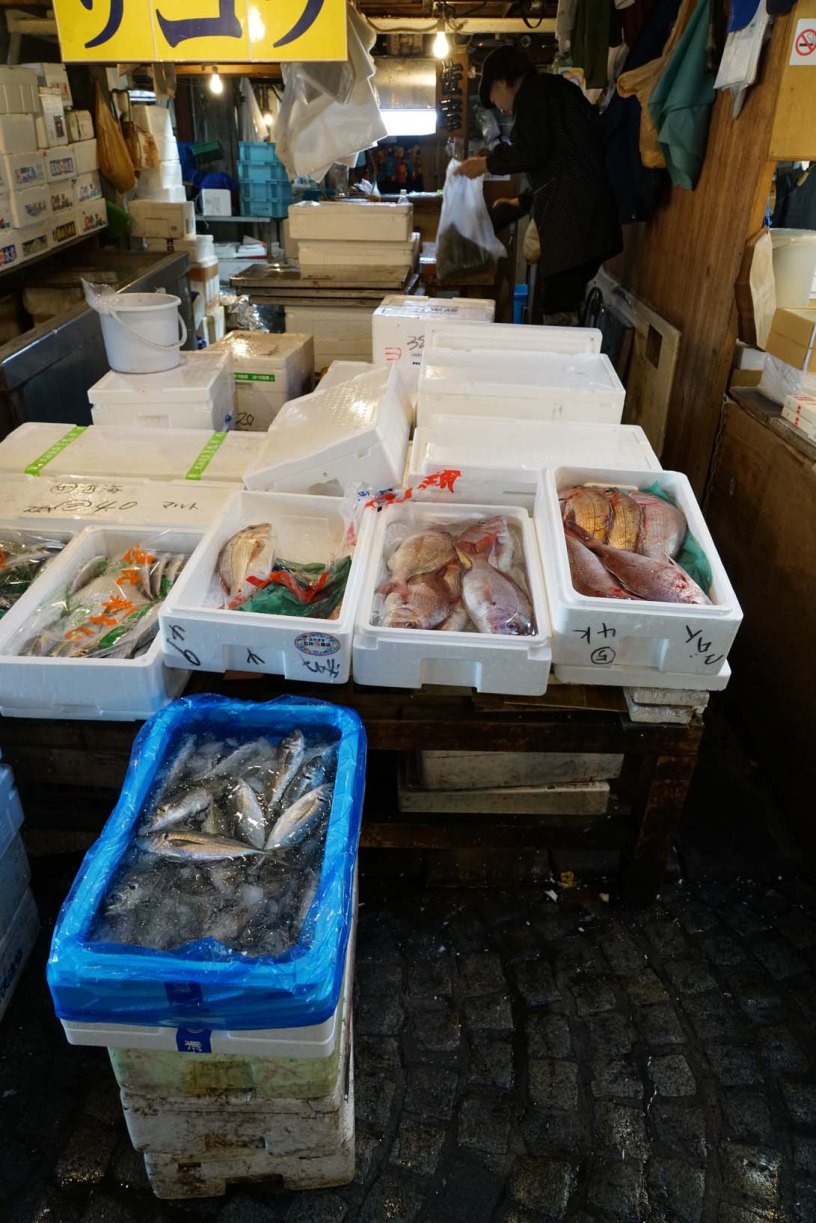 My plans to get to the Tsukiji market by 5 AM and get in line to watch the Tuna Action were incomplete and also a victim of the time change. The trains stop running around midnight and I hadn’t come up with plan B. I catch the A train from Shinagawa and change to the E line at Daimon. 2 stops to Tsukijishijo. Exit A1 for the fish market, go left then left at the corner and you are at Tsukiji Market. A notice by the entrance indicates the Tuna Auction is closed to visitors until sometime in January. Very busy area with large sheds full of vendors and fish. I wander around, but it’s already 10 AM and most of the business of selling and buying has died down for the day and the market was in a clean up get ready for tomorrow phase. Along the perimeter near the entrances where vendor stands and sushi restaurants with long lines of hungry customers. I make some pottery and tea purchases and get in the shortest line I can find and about 20 minutes later I am seated at a counter with hot tea and have ordered the Nami Sushi Plate with Miso Soup. Another 10 minutes and I have some great food in front of me which is quickly devoured. So fresh and so good and well worth the wait in line. 945 Yen later I am out the door and headed to the Ginza.