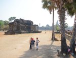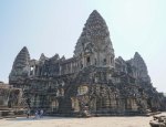 Early breakfast at the hotel with an 8:15 pickup for the Temple Tour. The hotel provided a nice SUV with cold AC, a driver and a cooler full of water, beer and towels. We head to the new Visitor Center to get my Temples Pass. The center use to be on the road to Angkor Wat, however the facility was too small with limited parking and ticket windows and over time could not handle the volume of visitors. So the government built a new facility and a new Historical Museum a bit further out of the way to the Temples. Actually worked quite well, fast service and for $40 I came away with a three day pass with my picture on it. We got to the west gate of Angkor Wat around 9:30AM where I was let out with the arrangement to meet up at the east gate. I grab some cold water and cold towels and join the flow. Many tour buses, cars, Tuk-Tuks, motorbikes, pedestrians everywhere, vendors and Angkor Wat. I was there, pretty awesome. Long causeway over the moat. The image that was imprinted prior to arrival was maybe further to the south and east along the moat taken in different weather with different light with fewer people, but I could see the temple towers and I moved ahead on this hot muggy overcast morning towards the gate along with hundreds of others. Temperature is already in the 90’s with a forecasted high of 104 (40+ degrees Celsius). Angkor Wat was built during King Suryavarman II’s reign between 1113-1150 AD.