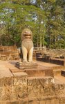 Interesting view of the Cambodian landscape with bare hot dry land, dry riverbeds, skinny cattle and many people just sitting in the shade. Hot sun was glaring through the haze. We passed through some small villages all of which had vendor stands selling fruits, tourist items and drinks, once through them we were back to a routine of hot dry land, shacks interspersed with larger houses and the relentless sun. Many homes are built on stilts as the driver explains that during monsoon this area will flood. We reach Banteay Srei in about 30min. This complex is the most developed in regards to facilities such as entrance gates, visitor center, restrooms, gift shop and an organized vendor stall set up. It is also one of the smaller sites and I make my way through the temple site in 30min. The carvings are very intricate and well preserved. The site was not commissioned by a king so it is not considered a royal temple. Dedicated to various Hindu gods and demons it has the most exquisite carvings and statuary I have seen on this trip.